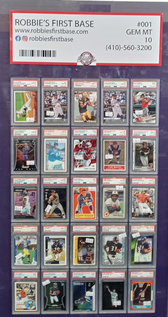 Robbie’s First Base was founded in 1989 by Robin Davis Sr. Robbie’s First Base has been a staple in the Sports Memorabilia business for the past 35 years. Located near Baltimore, MD we are a full service retail and wholesale operation with our main showroom being located in Timonium, MD. With a strong reputation in the industry for providing quality and authentic items, Robbie’s First Base should be your first choice when it comes to high quality items at a reasonable price. Stop by our store and check out our showroom floor!